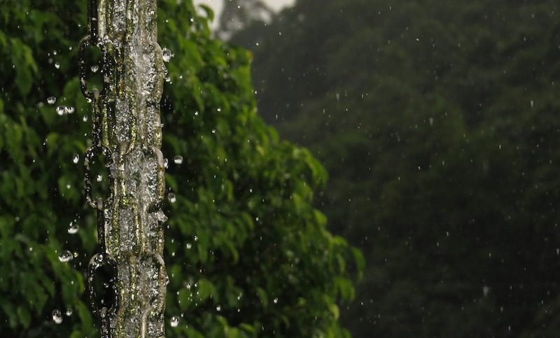 A rain chain is another simple solution for harvesting rainwater. It is an alternative to using pipes and downspouts.
