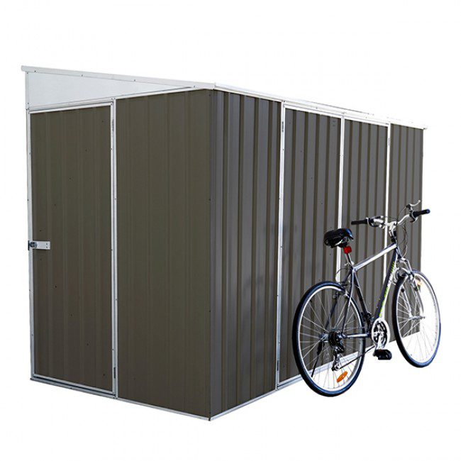 Manufacturers such as Spanbilt and Absco have some great bike sheds which have versatile openings and don’t take up too much room. These products are made from Steel and sheds are made in Australia.